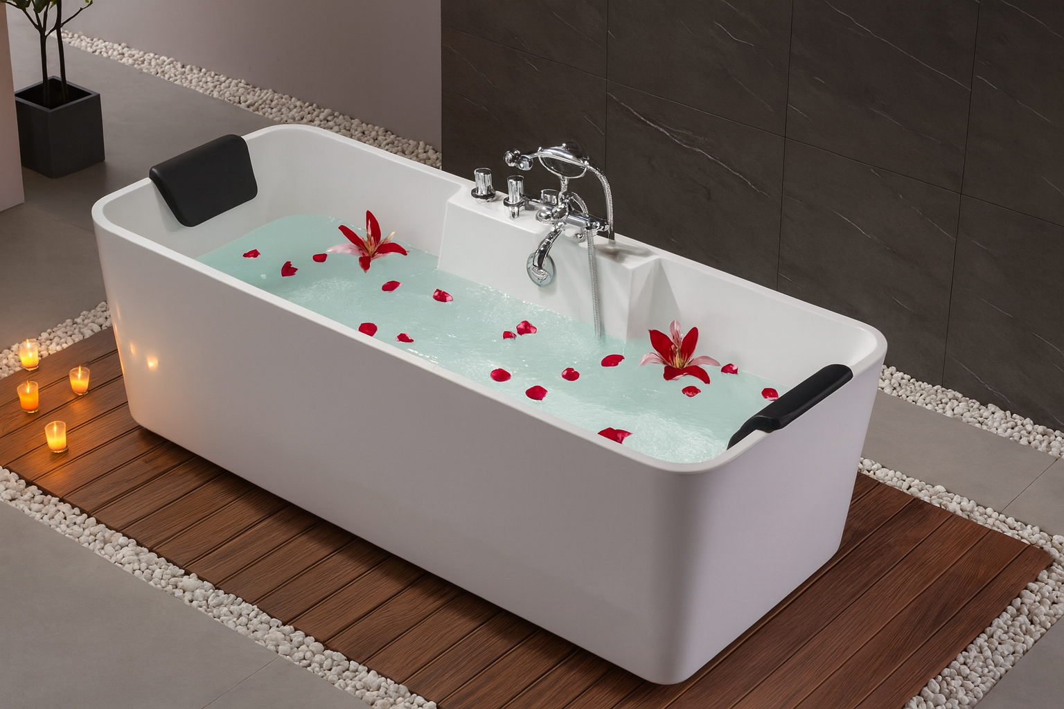 Match the tub to your space and goals: Alcove for small rooms, freestanding for style, corner for two, jetted for therapy.