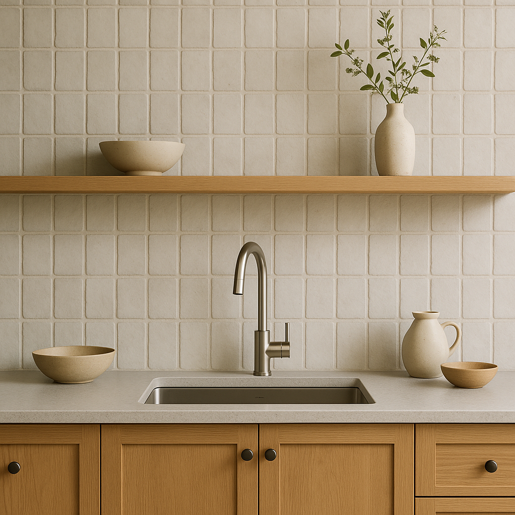 Wabi-sabi celebrates irregularity. A backsplash of handmade tiles with uneven edges adds authenticity. -